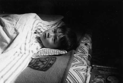 この写真は1963年頃病気で寝てるタケシ。伊勢の人間にとっての伊勢うどんは、胃にもたれず身体を労る病人食や離乳食みた