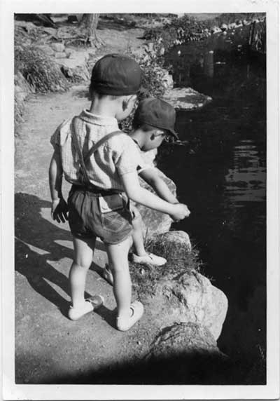 この石の隙間などにザリガニがいて糸にエサを付けておびき出し捕獲したものです。この写真は勾玉池で 撮影されたものでしょうが、外宮の日除橋の下に潜り込んで遊びました。